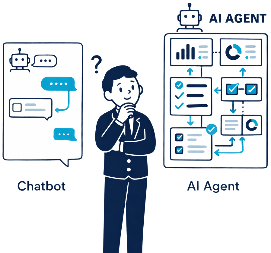 This page explains the difference between AI agents and chatbots in a business operations context, how each works, and when one is more appropriate than the other.
