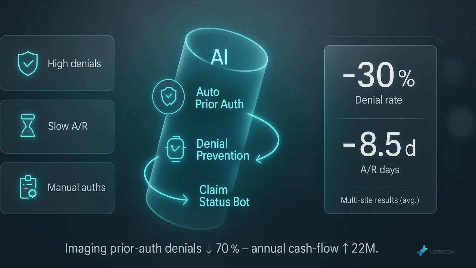 A mid-sized health system’s billing office was overwhelmed by denials for high-cost imaging procedures. They implemented an AI platform to automate the prior authorization process. The system pulled clinical data directly from the EHR, submitted the request to the payer, and followed up automatically. This single intervention reduced prior authorization-related denials for imaging by 70% and accelerated cash flow by an estimated $2 million annually.