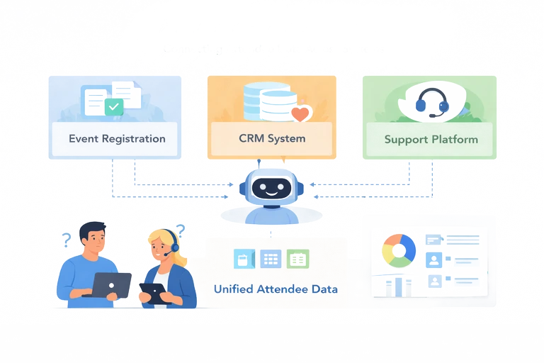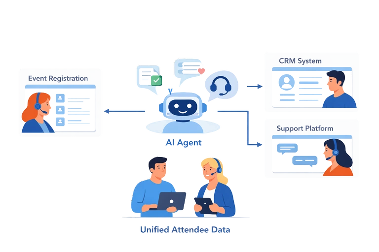 As events grow in size and complexity, managing attendee data across registration, CRM, and support systems becomes increasingly difficult to do consistently. When teams rely on manual checks or disconnected tools, delays and mistakes become part of day‑to‑day operations. AI agents help event teams maintain a clear, accurate view of attendee information by connecting existing systems and making that data usable at the moment it is needed, without requiring changes to the tools teams already depend on.