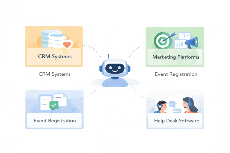 AI agents operate alongside existing event systems. They do not replace registration platforms, CRM tools, or support software.