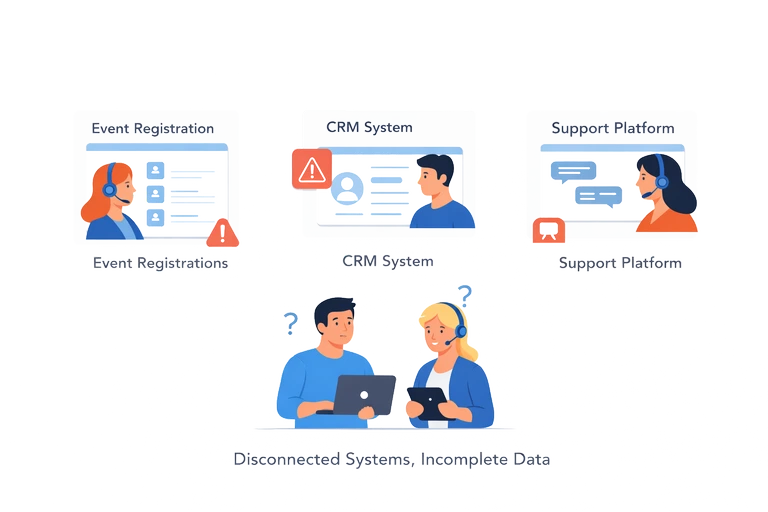Managing attendee data becomes complex as soon as events involve multiple tools and teams.