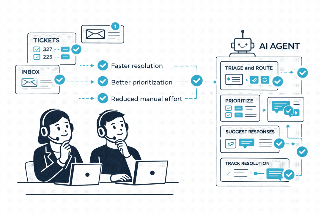 An AI agent for customer support is a system that understands questions, retrieves the right information from connected tools, and supports actions based on real operational context.