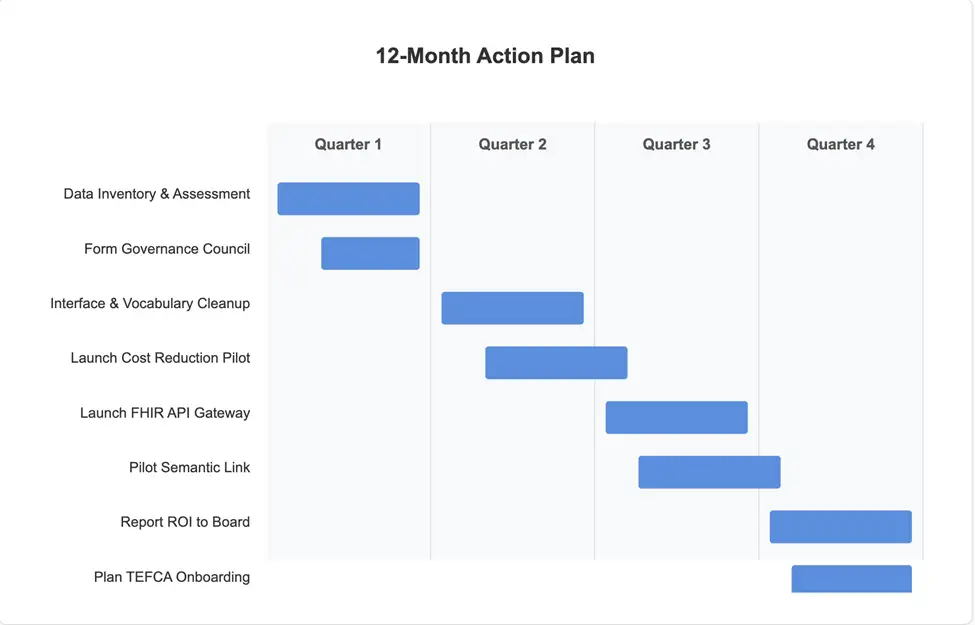 So, when the board asks about the ROI of your interoperability project, don’t show them a Gantt chart of interface engine upgrades. Show them a bar chart of declining duplicate test costs. Show them a trend line of reduced claim denials.